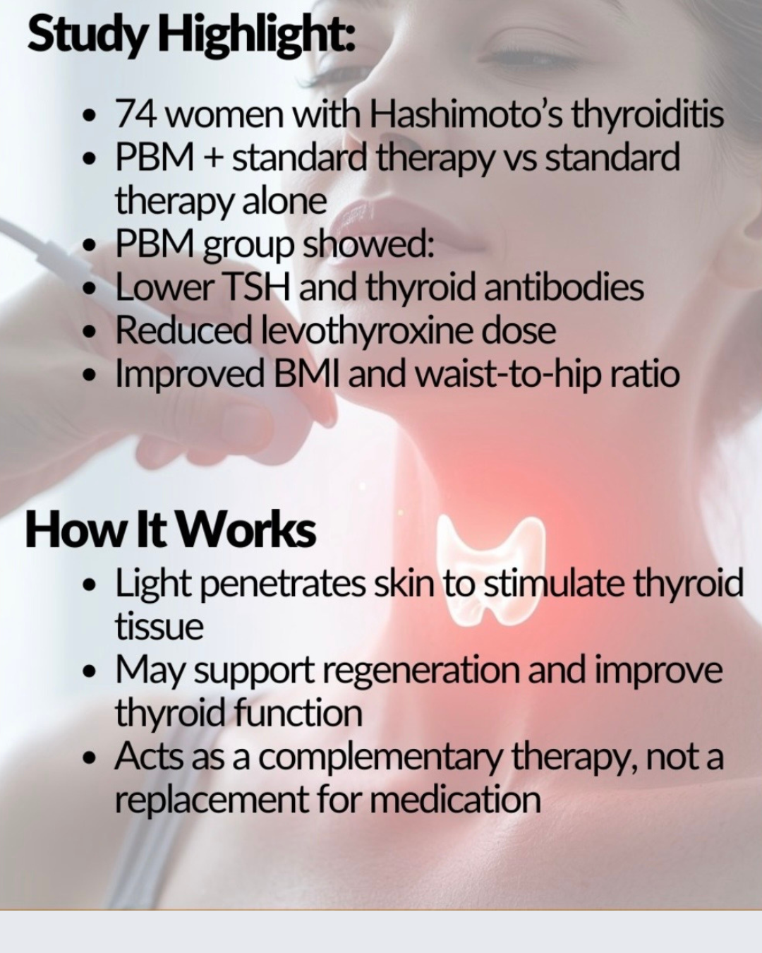✅ Bottom line: Red light therapy may help your thyroid work better, lower antibody levels, and even reduce medication needs — all under medical supervision.